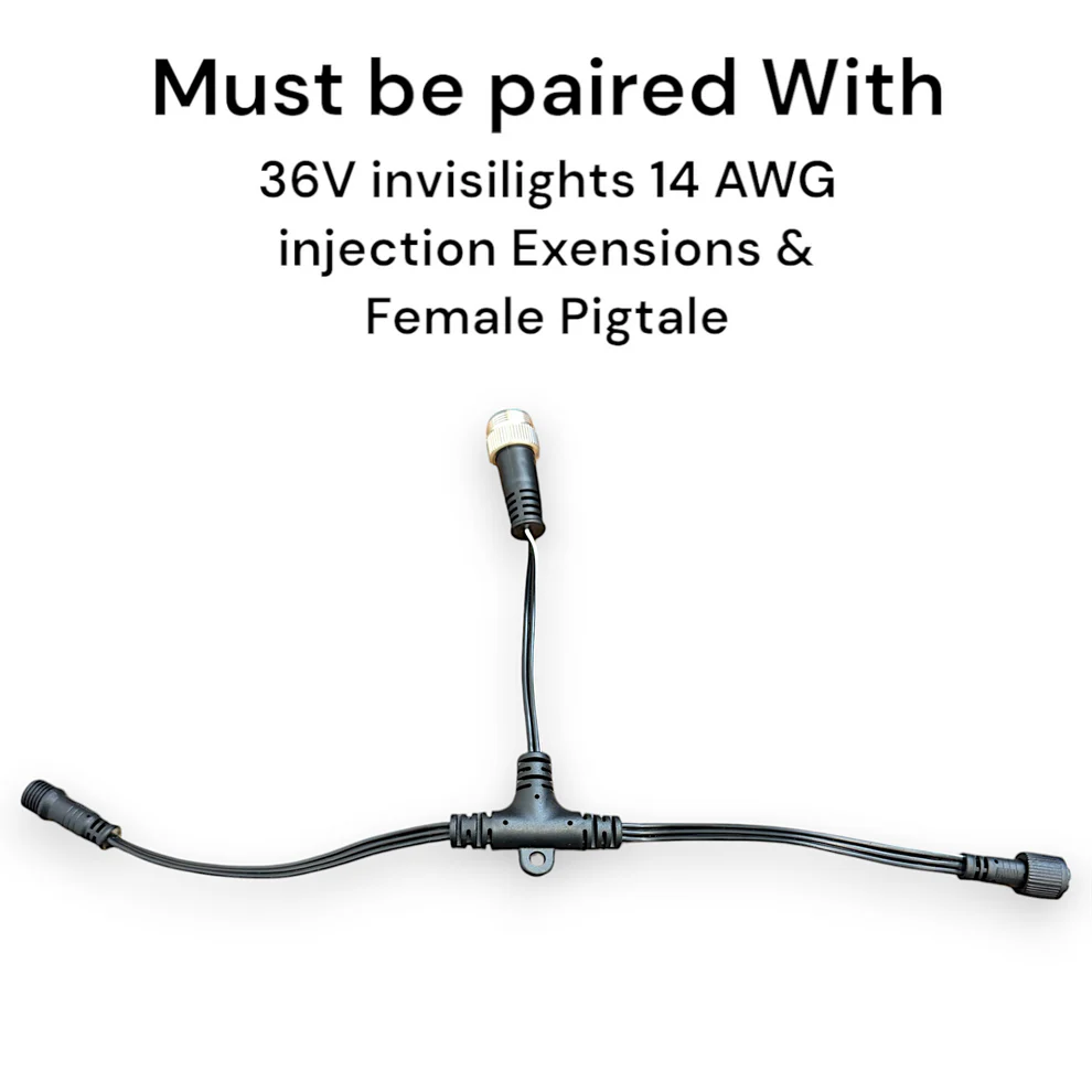 Must Be Paired With: The 36V Invsilights 14AWG Injection extensions and Female Pig Tale