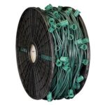 - One thousand-foot bulk spool of green wire with 15″ spacing for a total of 1000 C7 sockets. This 1000′ reel of 15-inch spacing is the most popular length for most commercial and residential applications and uses commercial grade SPT-2 green wire with the best C7 socket around, which makes it ideal for outdoor displays. Custom cut this C7 light line to the length you need and then use our snap-on male and female plugs (not included) to supply power to your lighting application.