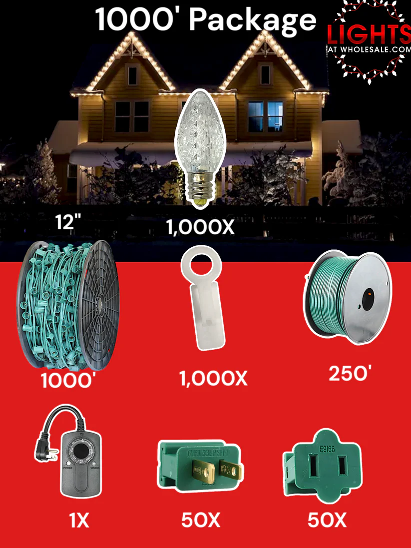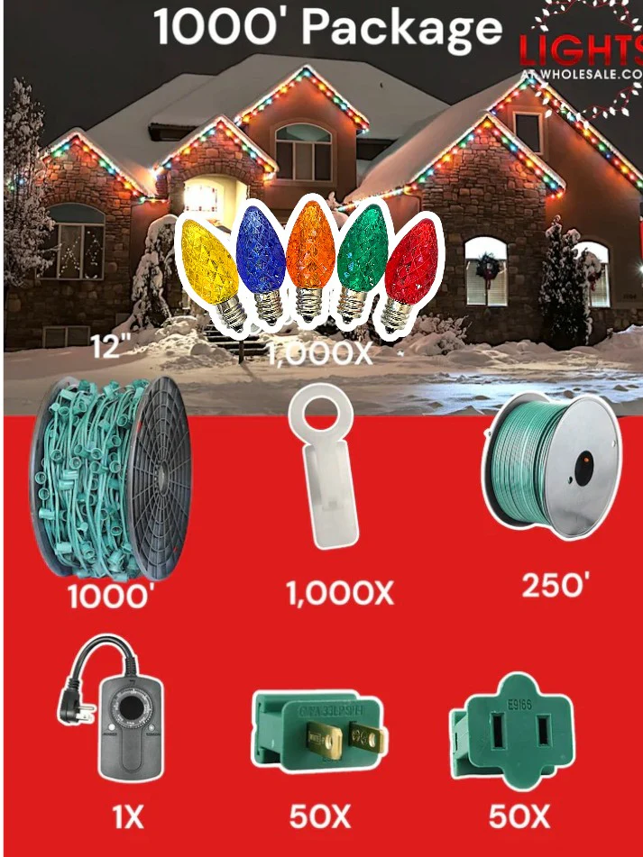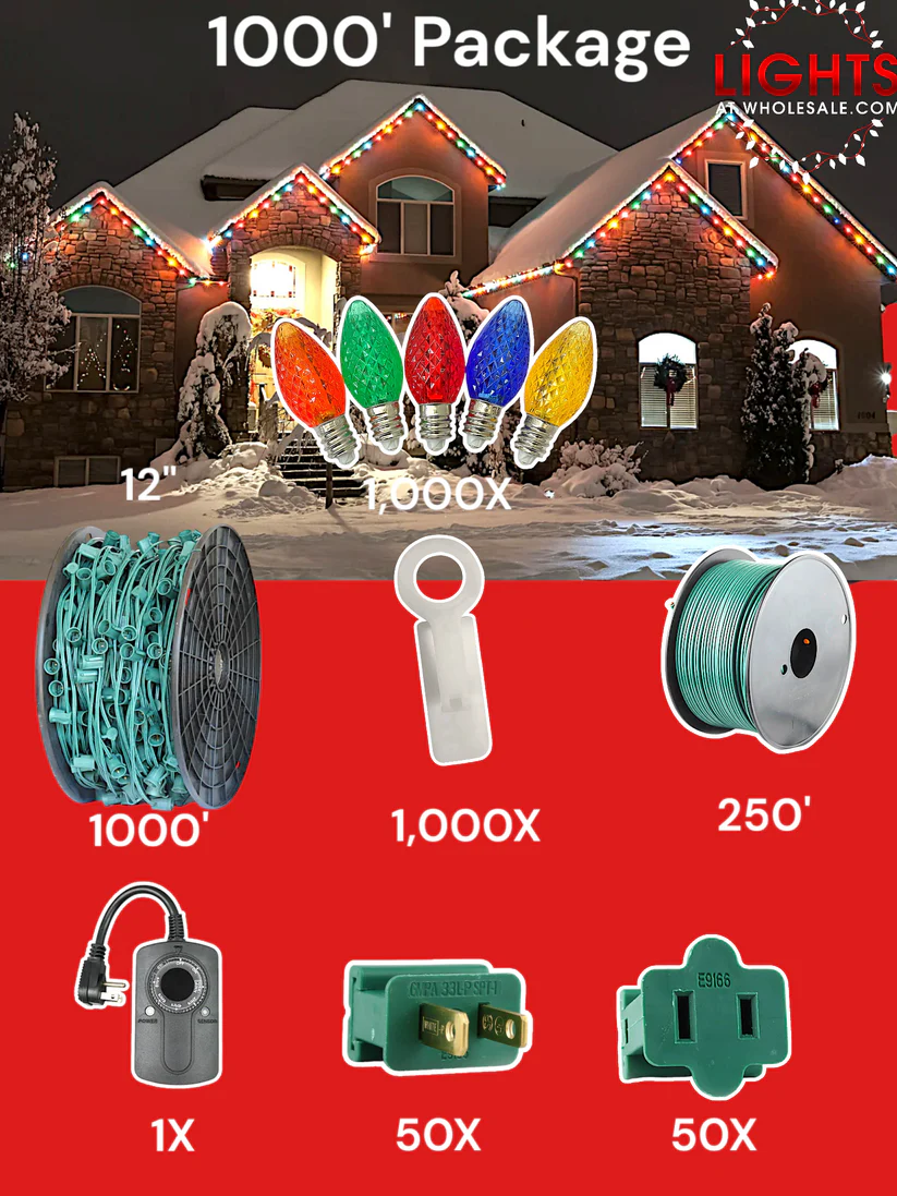 - 1000 C7 LED Bulbs: Bright and energy-efficient, these LED bulbs are perfect for creating vibrant holiday displays that stand out.